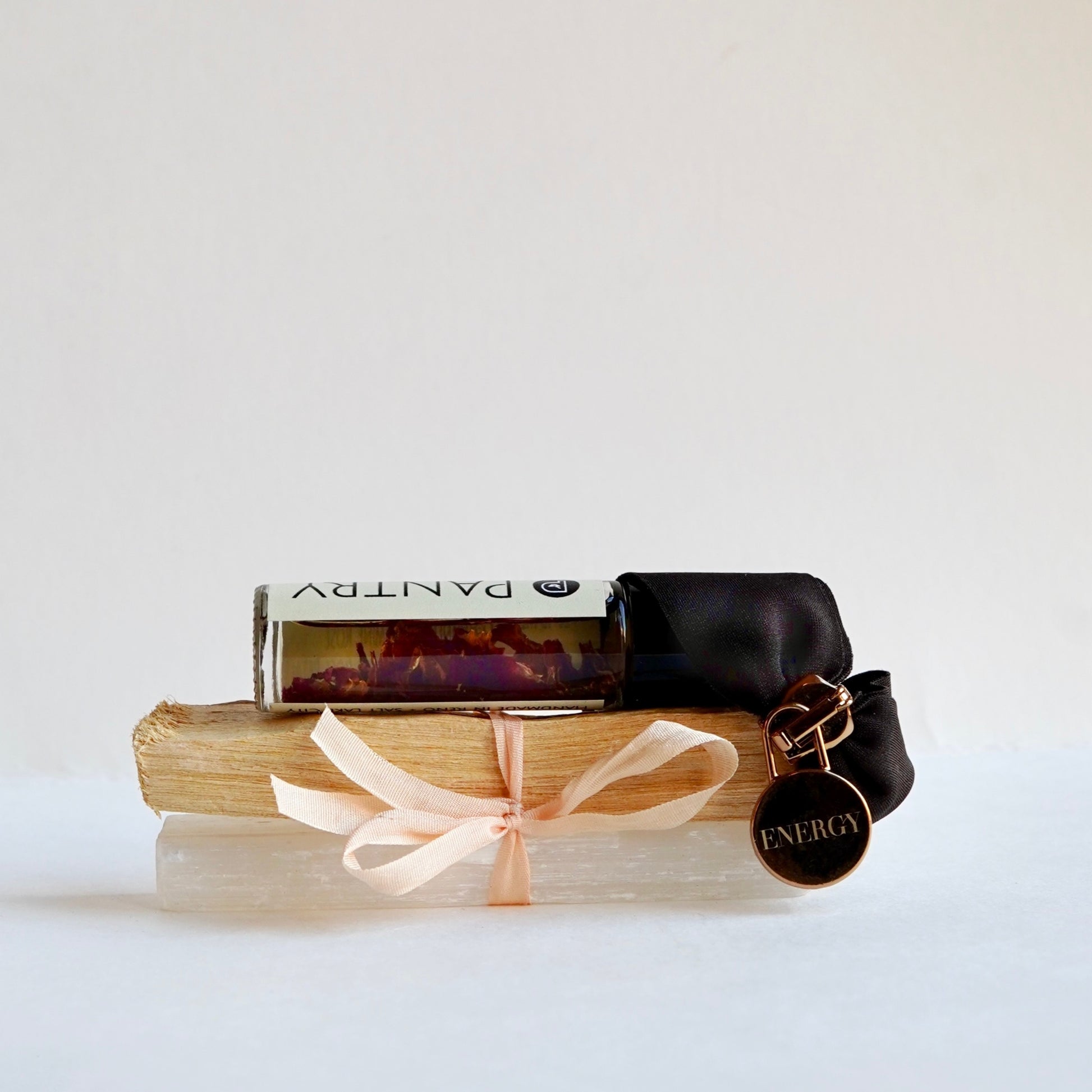 Your energy reset—ready when you are. This portable ritual features our Engraved Energy Bracelet, an aromatherapy rollerball remedy of your choice, plus a selenite crystal and palo santo pairing. A grounding little toolkit for clarity, intention, and good energy on the go.